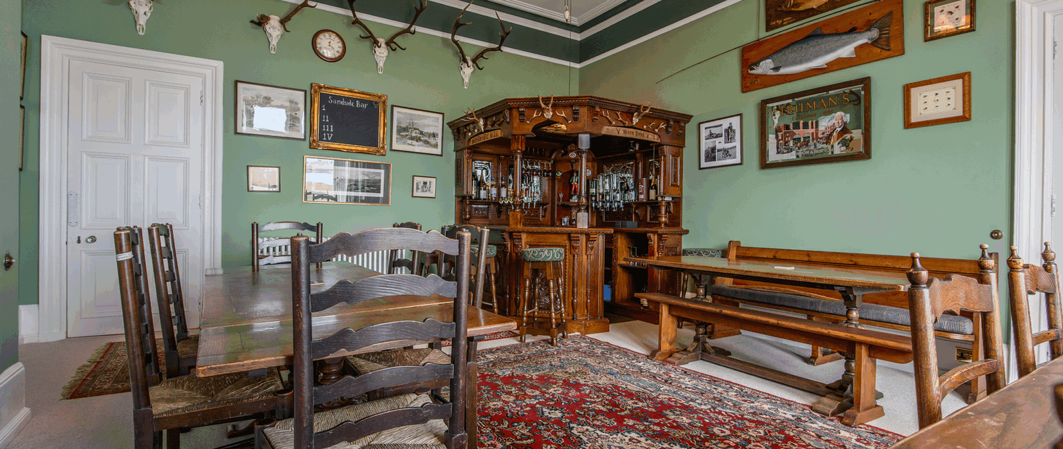 The space is versatile for both day and night events. Large windows allow plenty of light in during the day for informal lunches or breakfast. During the evening you can open up the handcarved bar where you can enjoy the Water of Life or whip up a cocktail.